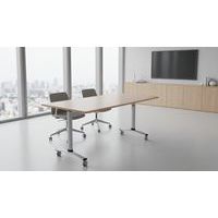 Table de réunion rectangulaire Axe avec plateau pivotant permettant un gain de place pour le rangement. Verrouillage automatique du plateau en position travail (horizontal) et position verticale (stockage) . Système de liaison rapide entre les plateaux par vismolettes. Equipée de 4 roulettes en polyamide Ø 75 mm avec frein.Table de réunion rectangulaire Axe avec plateau pivotant permettant un gain de place pour le rangement. Verrouillage automatique du plateau en position travail (horizontal) et position verticale (stockage) . Système de liaison rapide entre les plateaux par vismolettes. Equipée de 4 roulettes en polyamide Ø 75 mm avec frein. Chants ABS épaisseur 3 mm. Piètement métal laqué époxy. Fabriqué en France Livrée pieds démontés.