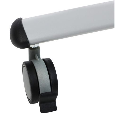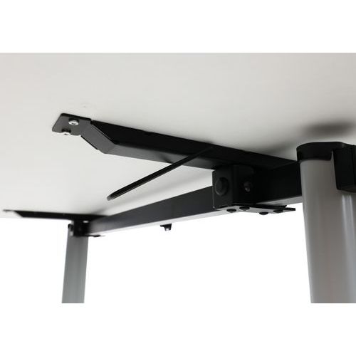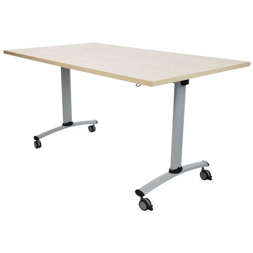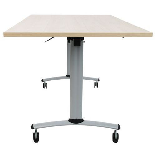 Table de réunion rectangulaire Axe avec plateau pivotant permettant un gain de place pour le rangement. Verrouillage automatique du plateau en position travail (horizontal) et position verticale (stockage) . Système de liaison rapide entre les plateaux par vismolettes. Equipée de 4 roulettes en polyamide Ø 75 mm avec frein.Table de réunion rectangulaire Axe avec plateau pivotant permettant un gain de place pour le rangement. Verrouillage automatique du plateau en position travail (horizontal) et position verticale (stockage) . Système de liaison rapide entre les plateaux par vismolettes. Equipée de 4 roulettes en polyamide Ø 75 mm avec frein. Chants ABS épaisseur 3 mm. Piètement métal laqué époxy. Fabriqué en France Livrée pieds démontés.