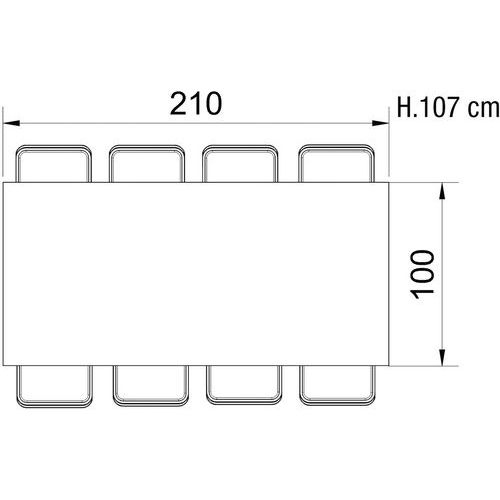 | Intitulé du produit | Table réunion haute Greko 210x100 cm, Type de piétement: Central, Hauteur: 107 cm, Largeur: 210 cm |
