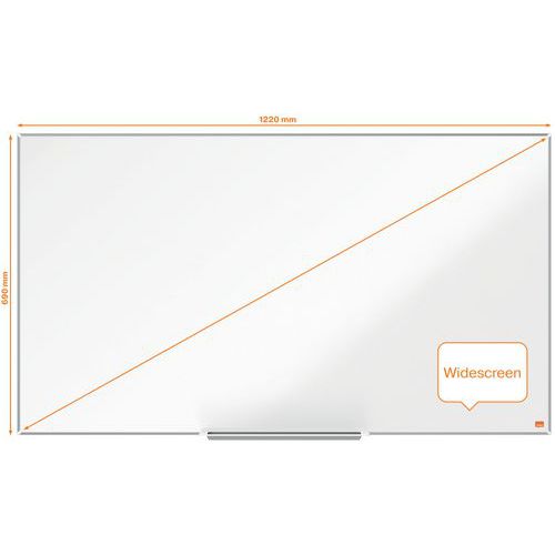 Tableau blanc acier laqué Impression Pro. Surface magnétique de qualité supérieure avec un niveau d'effaçabilité supérieur pour une utilisation fréquente. Cadre fin, moderne et élégant maximisant la surface d'écriture sur le tableau blanc. Système InvisaMount™ facilitant le montage avec des fixations soigneusement dissimulées derrière le tableau blanc. Un auget design pour ranger vos marqueurs et effaceurs.