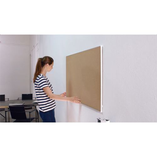 - Tableau d'affichage écran large en liège avec un cadre fin, moderne et élégant maximisant la surface d'affichage