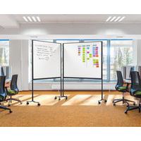 Un tableau blanc magnétique mobile et économique, en acier revêtu blanc sur les deux faces.