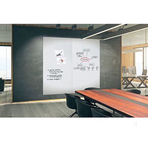 Tableau magnetique en verre - 2000x1000x18mm - super blanc mat - Sigel
