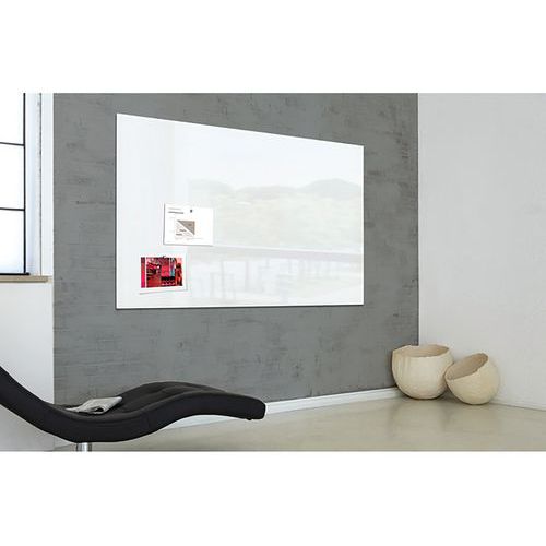- Tableau magnétique en verre XL Super blanc au design sobre et élégant.