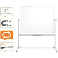 Les tableaux mobiles de la gamme Nobo Prestige présentent une excellente surface magnétique émaillée conçue pour durer. Elle est caractérisée par une effaçabilité supérieure et une résistance élevée aux taches d'encre, traces de marqueur, rayures et bosses. C'est la solution idéale en cas d'espace mural limité. Les roulettes facilitent leur déplacement entre les salles de réunion. Les tableaux double face pivotants à l'horizontale comportent un grand auget porte-marqueurs et sont livrés avec un marqueur Nobo et des aimants. Garantie à vie.