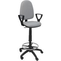 Tabouret Ayna avec bras fixe et roue en nylon. Hauteur réglable grâce à un cylindre à gaz. Mécanisme à contact permanent pour régler le dossier en hauteur, profondeur et inclinaison. Siège et dossier rembourrés, personnalisables en tissu et couleur. Base en polyamide haute résistance, noire avec 5 rayons et 55 cm de diamètre.