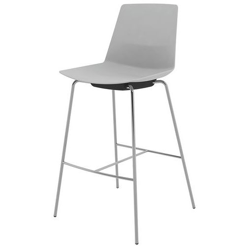 - Tabouret haut Clue au design moderne avec sa coque et ses pieds chromés.