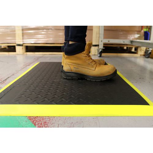 | Intitulé du produit | Tapis anti-fatigue durable motif diamant, Largeur: 900 mm, Longueur: 1200 mm, Coloris: Noir/jaune |