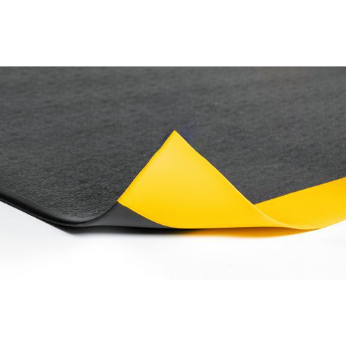 Tapis anti-fatigue polyvalent en mousse monocouche, Largeur: 1200 mm, Longueur: 18300 mm, Coloris: Noir/jaune