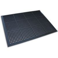 Tapis antifatigue bulles gomme nitrile non poreuse pour toutes applications. Ne se courbe pas, ne gonfle pas, ne se détériore pas au contact des huiles. Procure une traction exceptionnelle dans les environnements humides et huileux. Profil de surface lisse : facilite le passage des machines et des chariots élévateurs. Ergonomique : stimule la circulation sanguine des pieds, des jambes et bas du dos. Bordures biseautées sans enroulement : préserve des risques de trébuchements et chutes.