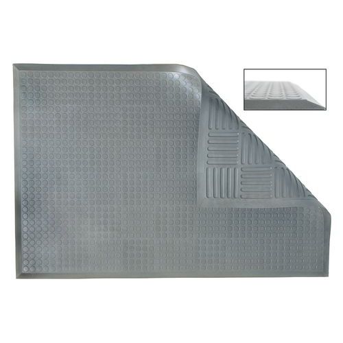 Tapis antifatigue lisse antistatique ESD Complete Uni. Conçu pour stimuler la circulation sanguine des pieds, jambes et bas du dos. Moulé en polyuréthane vierge, durable et léger. Tolère une exposition modérée aux huiles et autres liquides. Résistance électrique.