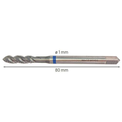 Taraud machine hélicoidal HSS Ø 0.5 à 1.75 mm, Ø: 1 mm, Longueur: 80 mm, Modèle: M6, Usage: Perçage Taraud machine hélicoidal HSS Ø 0.5 à 1.75 mm, Ø: 1 mm, Longueur: 80 mm, Modèle: M6, Usage: Perçage