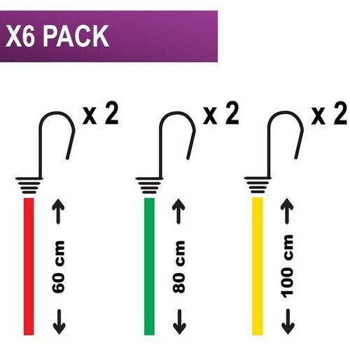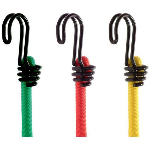 - Lot de 6 tendeurs à crochet double (2 x 60 cm + 2 x 80 cm + 2 x 100 cm) de diamètre 8 mm.