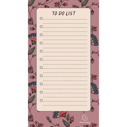| Intitulé du produit | To Do List Color Design 10 x 18 cm, Réglure: Petits carreaux (5 x 5), Type de reliure: Souple |
