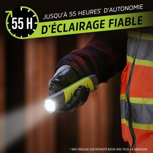 Heures d'autonomie : Cette torche Energizer fiable et durable peut briller jusqu'à 55 heures en mode faible intensité* *Avec 2 piles AA.
