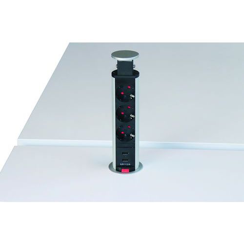 | Intitulé du produit | Tour d'alimentation en aluminium, Hauteur: 33.5 cm, Nb de prises: 3, Largeur: 850 mm, Câble longueur: 2 m |