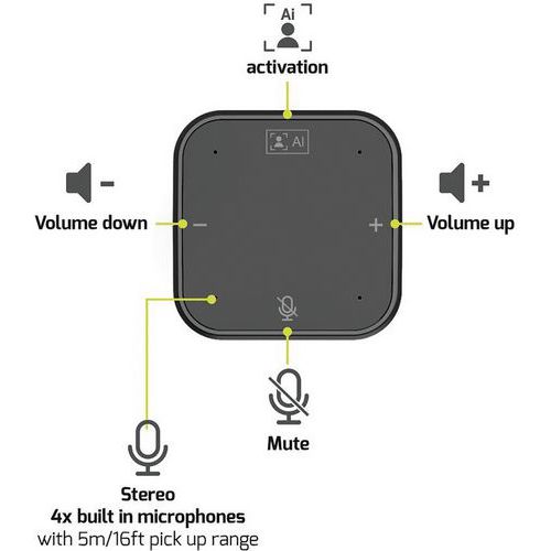 - Tour de conférence de bureau tout en un : Camera, Microphone et Conferencière.