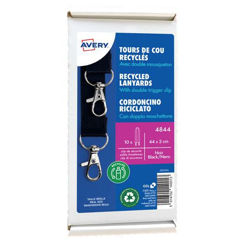 | Intitulé du produit | Tour de cou badge recyclé avec double mousqueton, Emballage recyclable: Oui - 100 %, Emballage recyclé: 90 % |