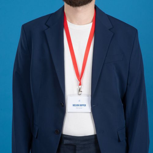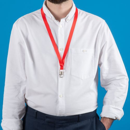 Tour de cou badge recyclé avec mousqueton, Coloris: Rouge, Emballage recyclable: Oui - 100 % Tour de cou badge recyclé avec mousqueton, Coloris: Rouge, Emballage recyclable: Oui - 100 %