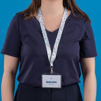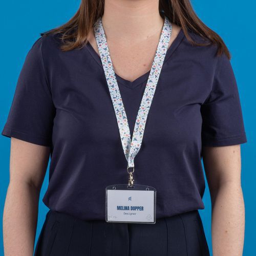 Tour de cou Avery satiné, large et plat, doux au toucher et confortable à porter. Mousqueton standard pivotant. Clip de sécurité qui se détache en cas de traction excessive pour éviter tout risque d'étranglement.