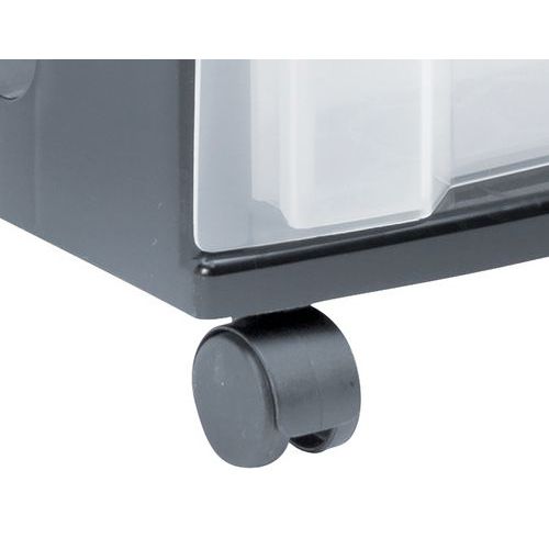 Ladeblok montée sur 4 roulettes pour une maniabilité maximale. Tiroirs transparents pour une meilleure visibilité du contenu. Hermétiques pour une protection maximale contre la poussière. Tour avec zones perlées sur le côté pour un étiquetage facile.