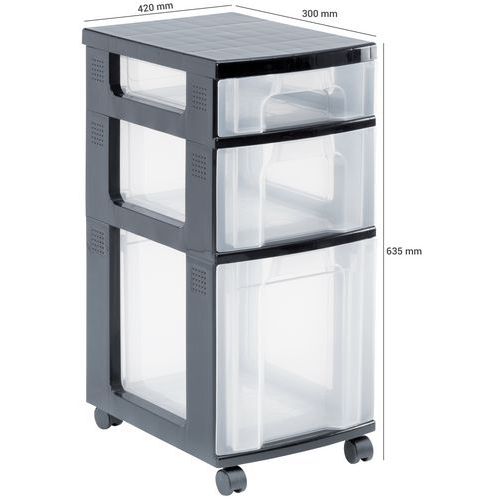 Ladeblok montée sur 4 roulettes pour une maniabilité maximale. Tiroirs transparents pour une meilleure visibilité du contenu. Hermétiques pour une protection maximale contre la poussière. Tour avec zones perlées sur le côté pour un étiquetage facile. Fabriqué au RU