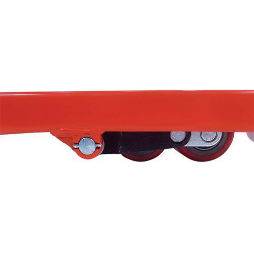 Équipé de roues directionnelles et de roues à fourche tandem en polyuréthane.