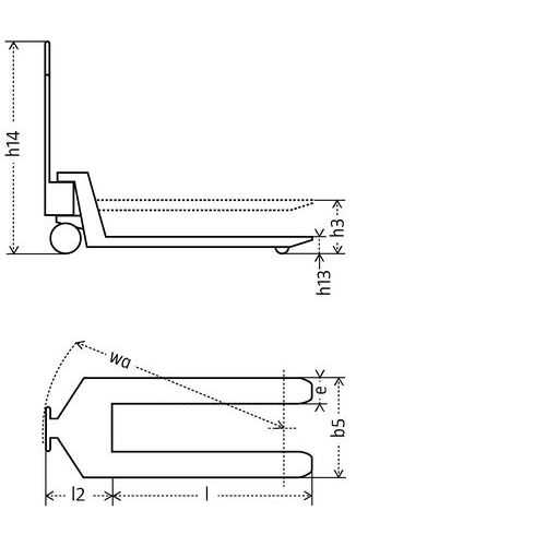 | Intitulé du produit | Transpalette manuel, Force: 2300 kg, Fourche longueur: 800 mm, Type de roue de fourche: Simple |