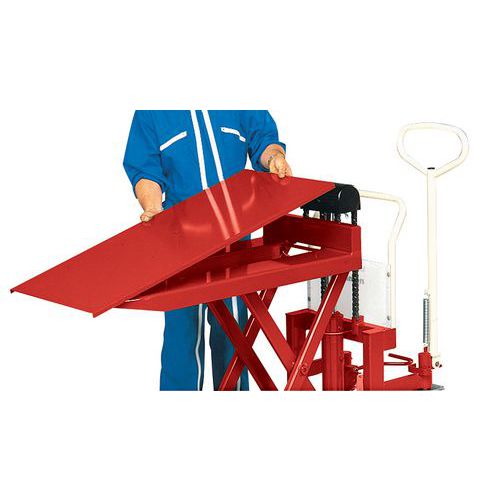 - Afin d’amener les marchandises à hauteur égale, par exemple à l’aide de la plate-forme élévatrice d’un fourgon ou d’un convoyeur.