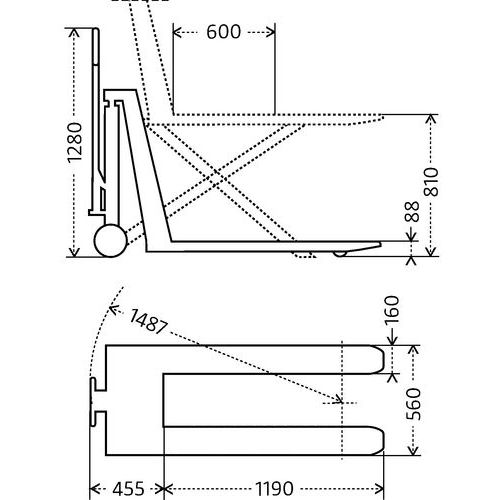 | Intitulé du produit | Transpalette manuel haute levée, Force: 1000 kg, Hauteur de levée maxi: 800 mm |