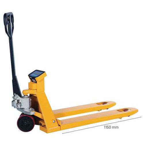 | Intitulé du produit | Transpalette manuel peseur, Force: 2000 kg, Fourche longueur: 1150 mm, Fourches écartement ext.: 540 mm |