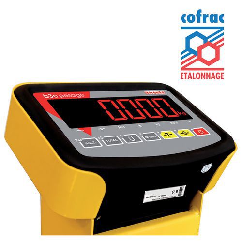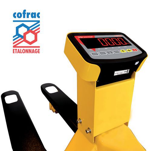 | Intitulé du produit | Transpalette peseur certifié COFRAC, Force: 2000 kg, Fourche longueur: 1160 mm |