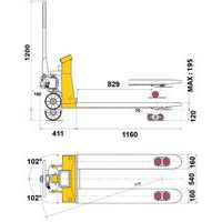- Longueur des fourches 1150 mm.