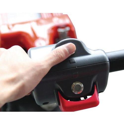- Poste de conduite robuste équipé d'un bouton d'arrêt d'urgence.
