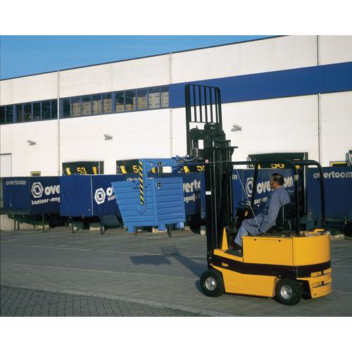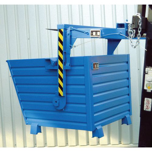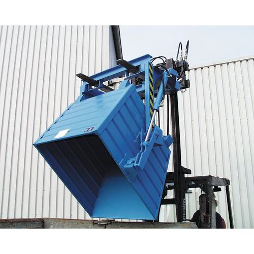 - Traverse mécanique en acier pour chariot élévateur permettant la vidange de conteneurs basculants.