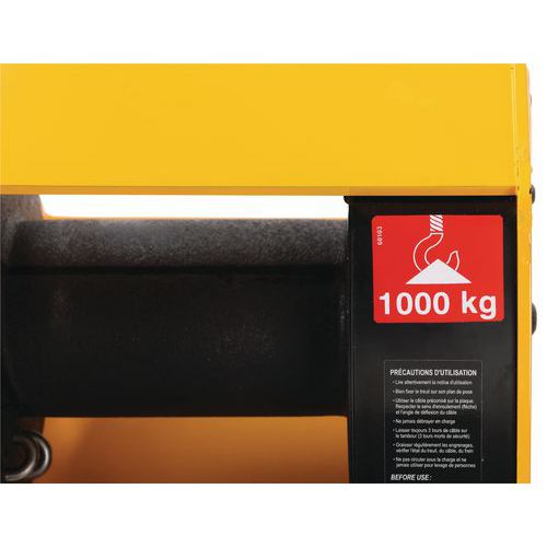 Treuil manuel de levage et de traction, Câble inclus: non, Avec frein: oui, Force: 1000 kg