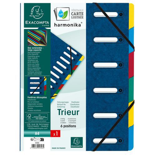 | Intitulé du produit | Trieur 6 compartiments 24 x 33 cm couverture cartonnée, Nb de divisions: 6, Coloris: Assorti |