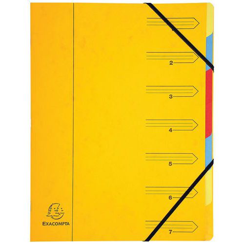 | Intitulé du produit | Trieur agrafé avec élastiques 7 compartiments, Nb de divisions: 7, Coloris: Jaune, Matériau: Carton |