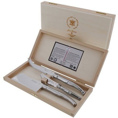 | Intitulé du produit | Trio couteau à fromage Laguiole Élysée, Matériau: Acier, Type de couvert: Couteau, Coloris: Argent |