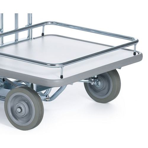 Hauteur au-dessus du sol (plateforme) : 270 mm, rayon de braquage : 1220 mm, charge maximale : 150 kg.
