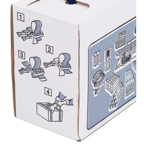 | Intitulé du produit | Trousse cerclage PP bleu, Feuillard longueur: 600 m, Feuillard largeur: 12 mm, Modèle: Boîte distributrice |