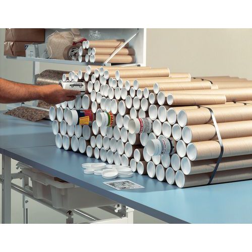 Fermeture rapide par embout plastique. Ouverture facile par languette de préhension. Tube carton très résistant.