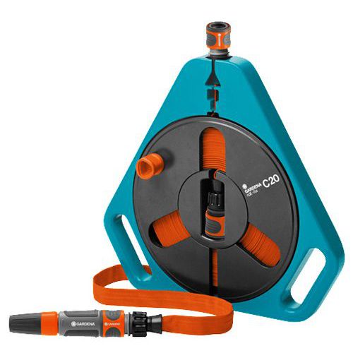 - Tuyau plat textile en boîtier-enrouleur compact.