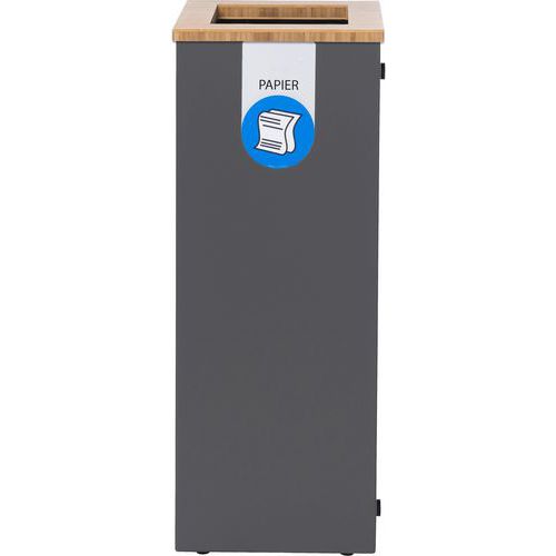 - Station de tri sélectif en acier galvanisé avec couvercle ouvert élégant et durable en bambou.