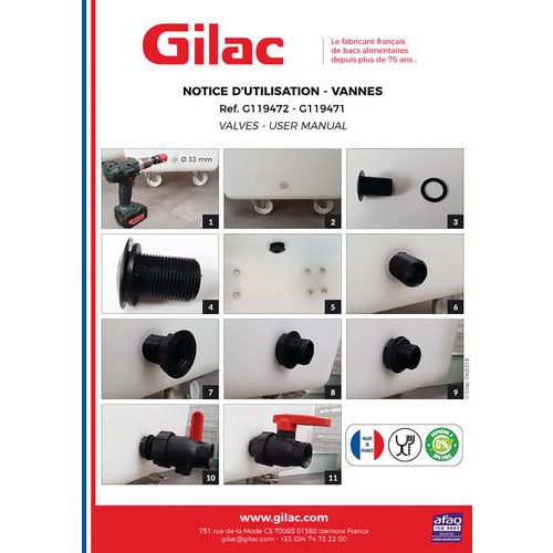 Vanne avec raccord pour bac profond - Gilac
