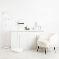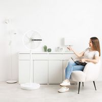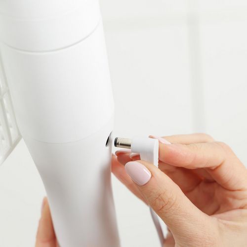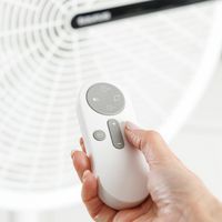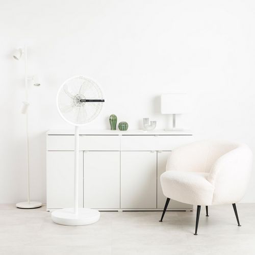 - Entilateur 3 en 1 conçu pour une utilisation sur table, en position moyenne ou sur socle.