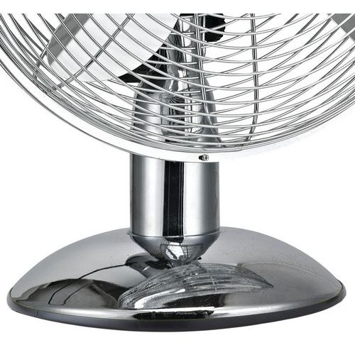 | Intitulé du produit | Ventilateur de table métal chromé 25 cm, Débit d'air: 416 dm³/s, Fonction oscillation: oui, Hauteur: 40 cm |
