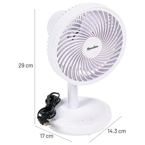 | Intitulé du produit | Ventilateur de table USB 5 avec oscillation, Débit d'air: 4 m³/min, Fonction oscillation: oui, Hauteur: 29 cm |