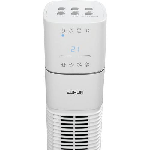 | Intitulé du produit | Ventilateur Eurom Towerfan 120, Fonction oscillation: oui, Hauteur: 122 cm, Puissance: 60 W, Coloris: Blanc |