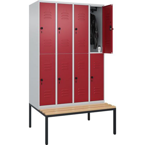 Vestiaire à deux niveaux Classic PLUS banc intégré - 8 casiers - CP